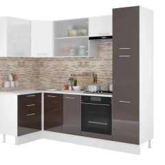 Кухонный гарнитур Люкс угловой 1200*2450 Белый глянец/Шоколад глянец (модульный) Горизонт